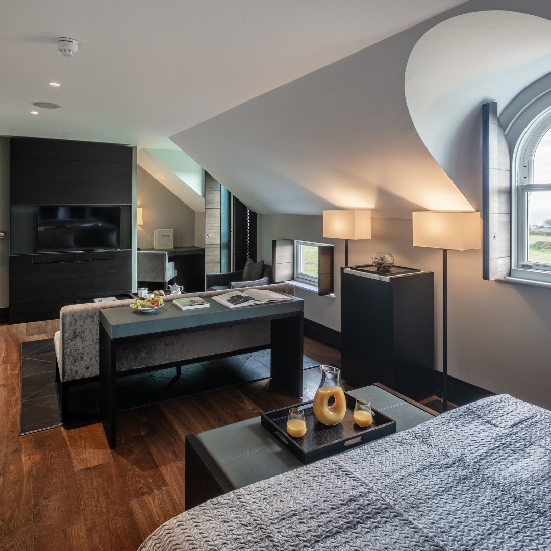 The hotel's standout feature is the three-floor suite within the original windmill tower, complete with a private observatory offering 360-degree views. From here, you can see the islands of Skomer, Grassholm, and Ramsey, as well as the scenic Preseli Hills. Each room at Twr y Felin is designed with contemporary style, luxury, and comfort in mind, making it the perfect retreat for visitors seeking relaxation and inspiration.