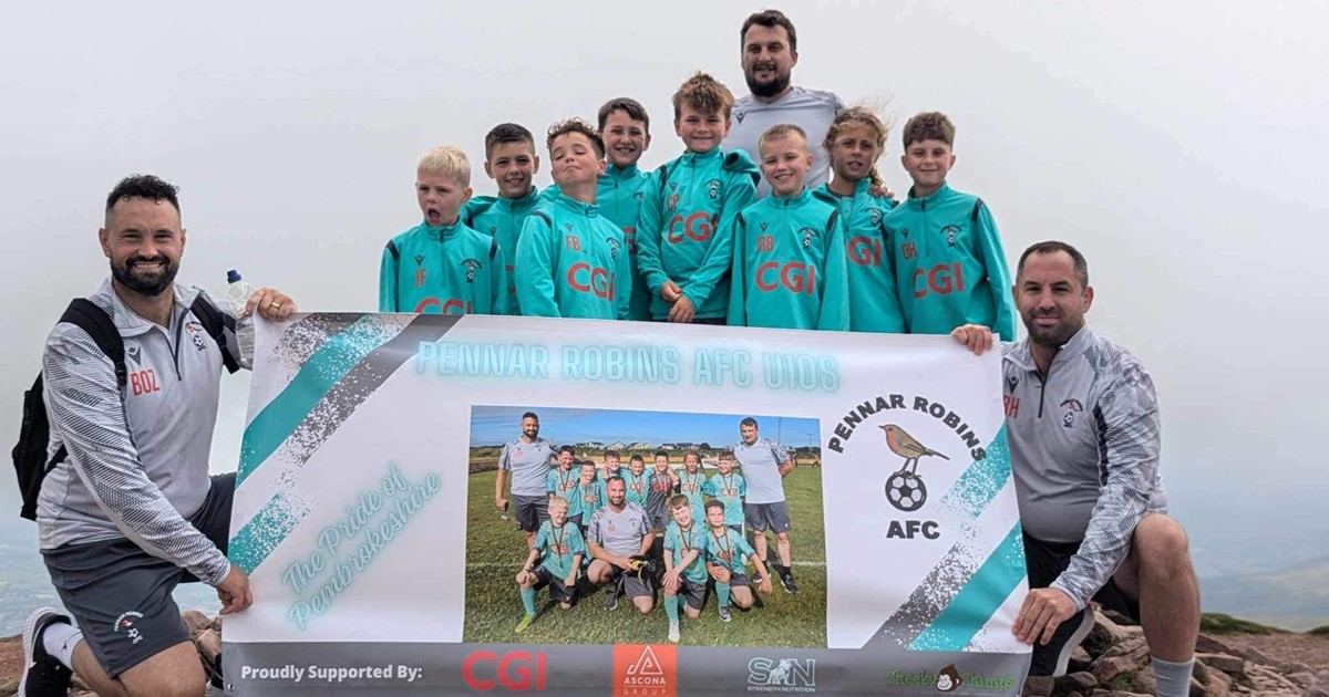 Pennar Robins Under 10s Coaches Richard, Phil and Mikey, and their squad of young footballers took on the mighty Pen-y-Fan mountain this past Saturday, to raise vital funds for the season ahead. The young stars powered up South Wales' highest peak in just over an hour, leaving their parents puffing in their wake.