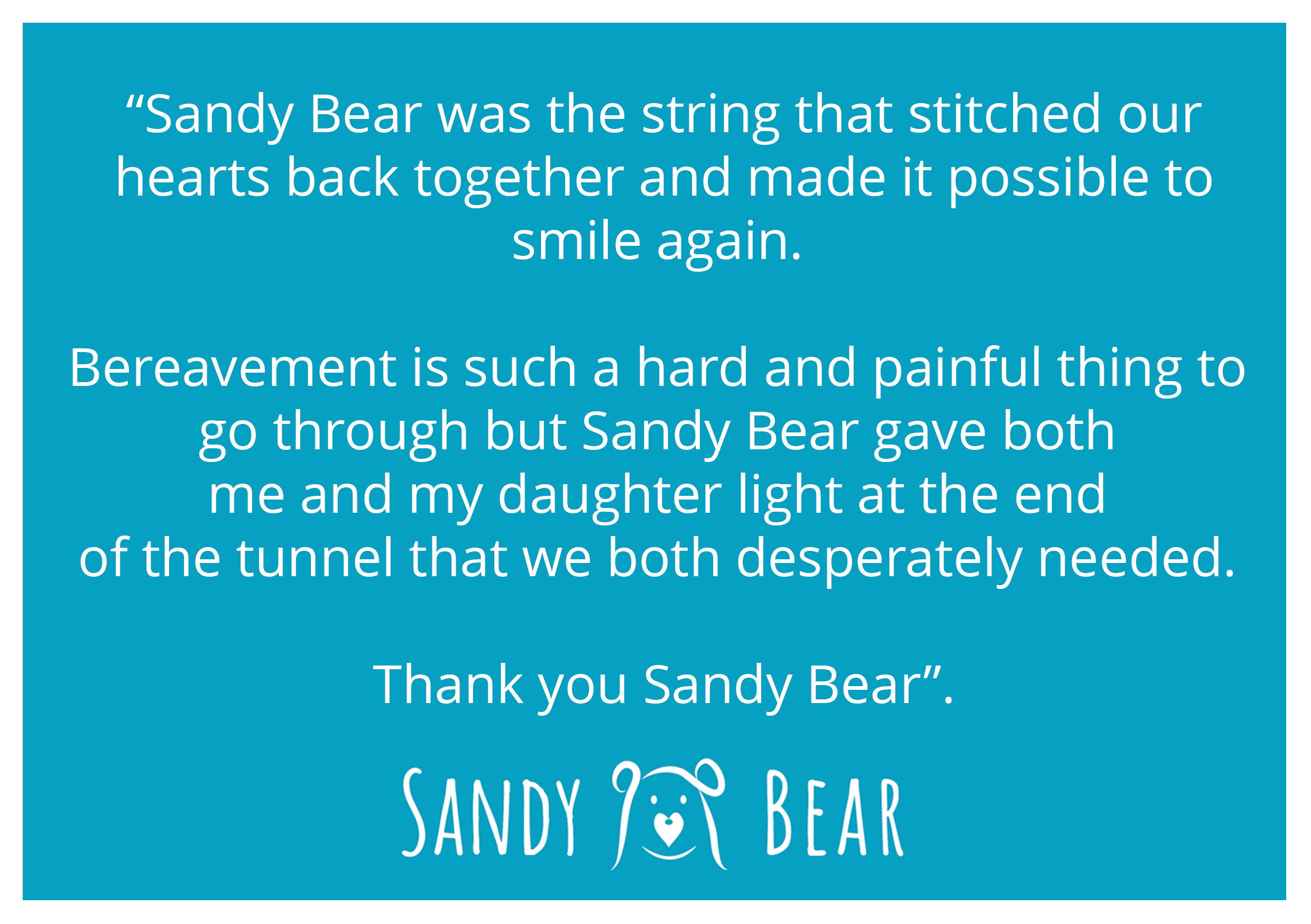Through the dedication of people who know how valuable a service Sandy Bear offer, and with the help of early trustees and supporters, Sandy Bear was rebuilt as a charity that could stand on its own. Today that passion continues, driven by our staff, our trustees and the families who trust us during the most painful moments of their lives.