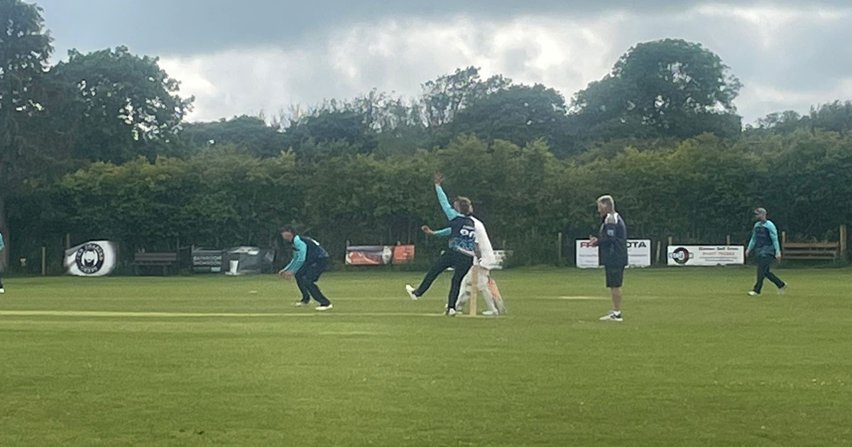 Harries then took control of his sides victory march as he bowled Jones for a duck and a run later on 105-7 Keen castled Williams also for a duck. Dyer was bowled by Harries on 109-8, his half century coming off 36 balls, the spinner then bowling Lewis Bansal for another duck and the innings ended on 11ao, when Tim Webb was run out having hit a boundary in his innings of 5, with ten overs of the game still remaining.