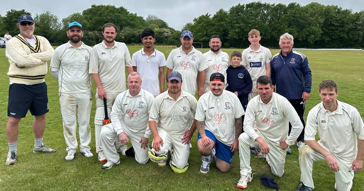 Having been invited to bat Steve Batchelor’s side found runs hard to come by as skipper Aled Phelps (2-13) and Jack Phillips (2-17) seam bowling had the upper hand. Opening bowlers Callum James (1-10) and Brennan Martin (1-14) alongside Owen Phelps (1-17) and Rhys Phelps (1-13) all supported but they were unable to secure all the bowling bonus points, with all the home side wickets taken, by catches. Don Harty top scored with 22 (3x4) adding 37 for the seventh wicket with Fraser Watson who scored a patient unbeaten 20 (1x4), Gareth Davies the only other ‘Cow’ in double figures with 10 (1x4).