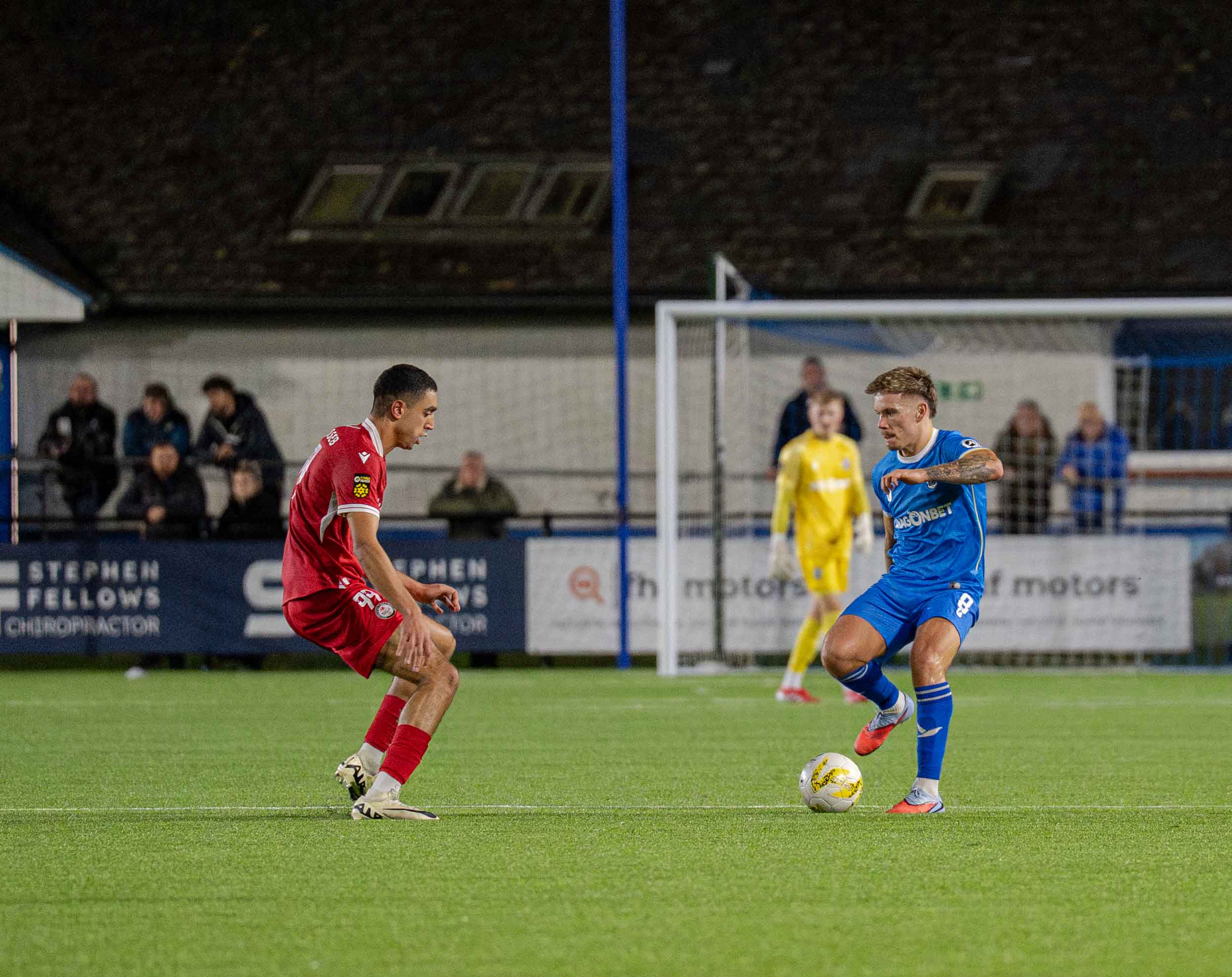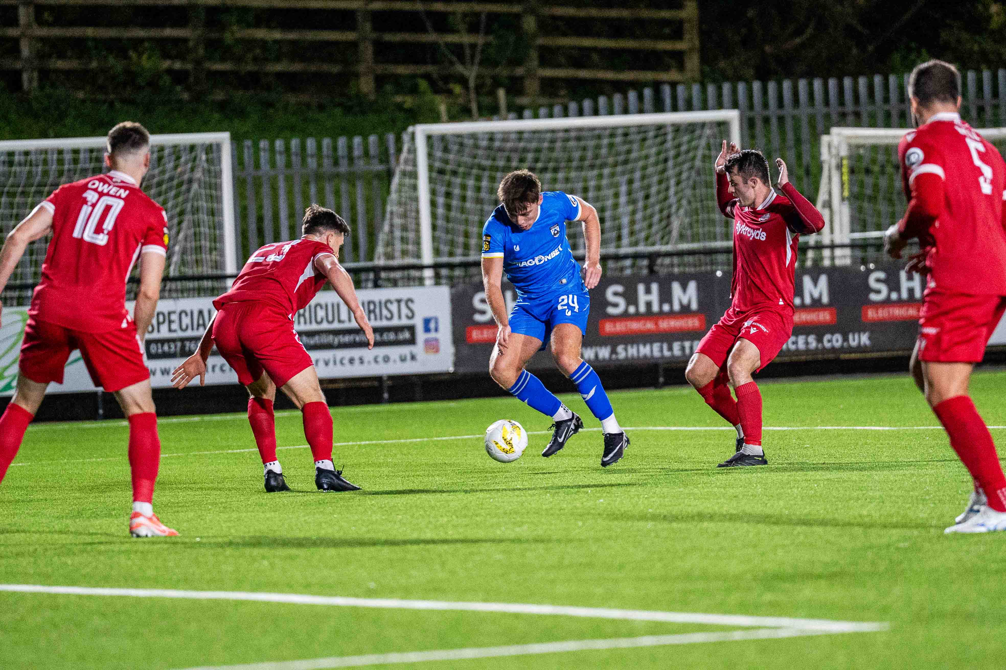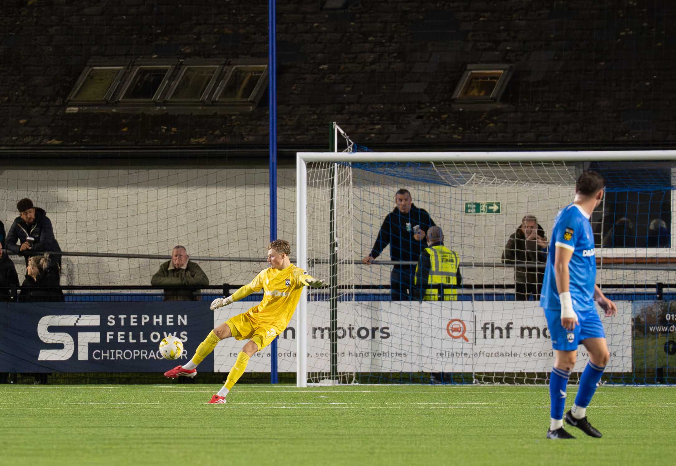 The Lakesiders, formed in 1880 showed promise in their attack, Louis Hall showing a clear pair of heels down the left flank, his sides red shirts failing to infiltrate the 18 yard box where again his delivery deserved a better result, centre half John Owen also one to show strongly as he had a battle royal with Ahumn, who chose to shoot from 18 yards on 40 minutes, with Iori Humphreys clear outside him the better option.
