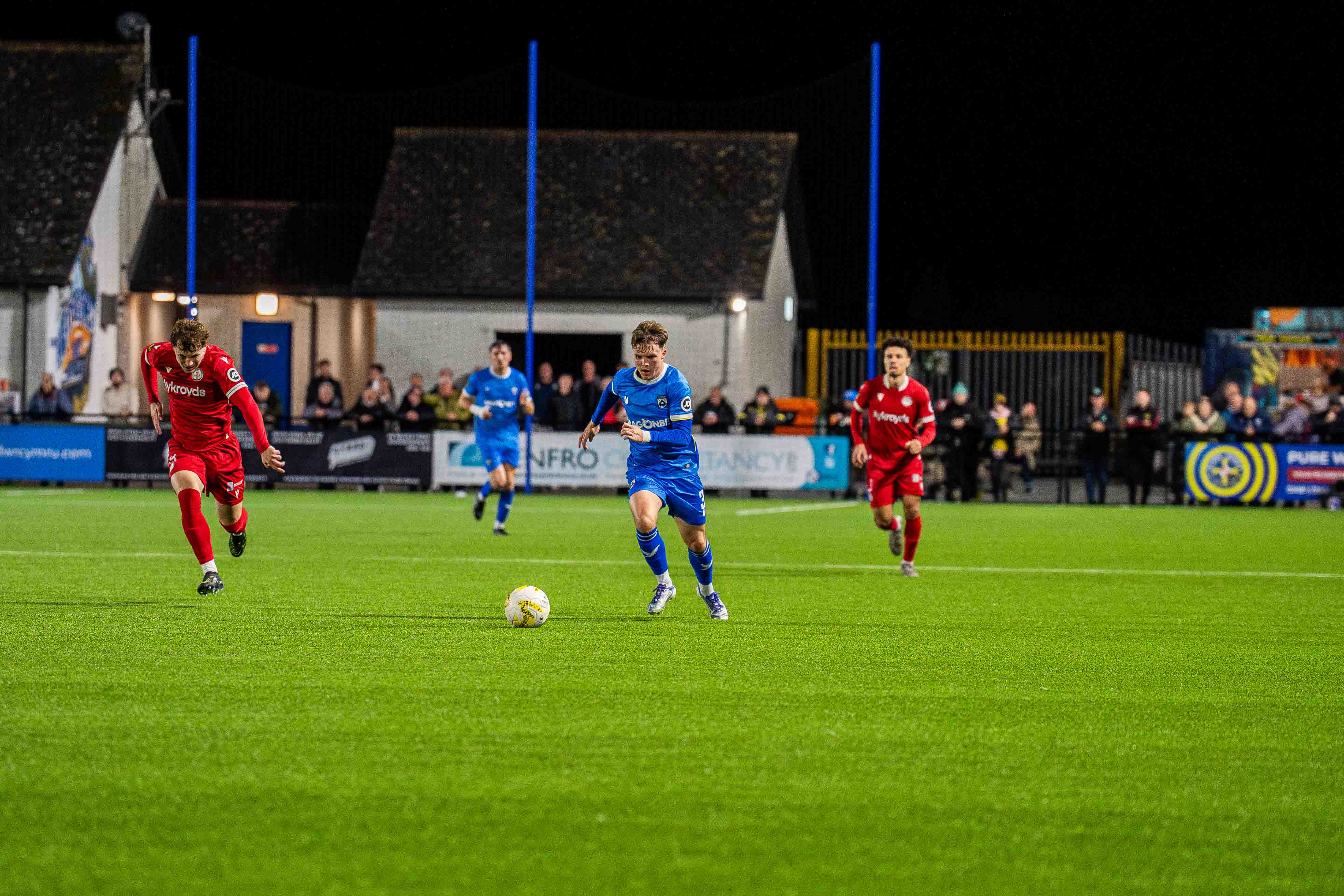 Markham-Jones was a key communicator, allowing the play to develop whilst his fitness was unquestionable which helped him sell his decisions to all and sundry, waving away Bala appeals for a penalty, cards remaining in his pocket with a stern warning required if needed to underline his empathy for the game.
