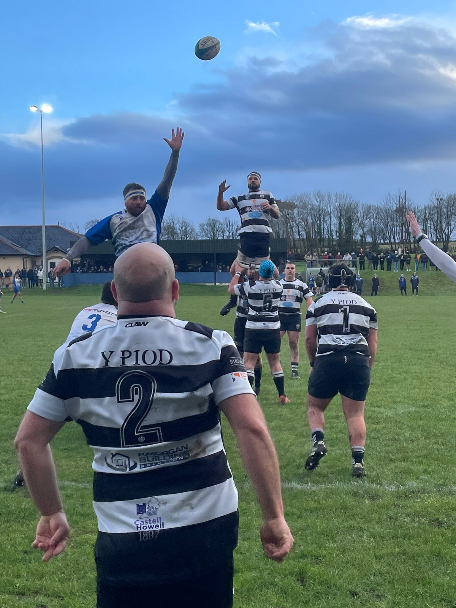 The next 15 minutes saw a down spiral for the Blues as they conceded too many penalties, veteran full back Steve Hewitt used all of his 42 years of experience to find prominent field position and it was from one such infringement on 25 minutes he reduced the arrears with a 35m penalty. The line out set piece was one in fairness where Haverfordwest jumpers Jake Evans and Jack Clancy, alongside Phillips and backrow forward Dev Willimas held parity against their opposition jumpers in Ryan Williams and Ryan Lewis, it was the ball secured from the throw which proved a problems as their route away was stifled by the tireless engagement from the Tumble backrow unit of Leonard Ellery, Daf Griffiths and number 8 Steff Owen did the hard yards.