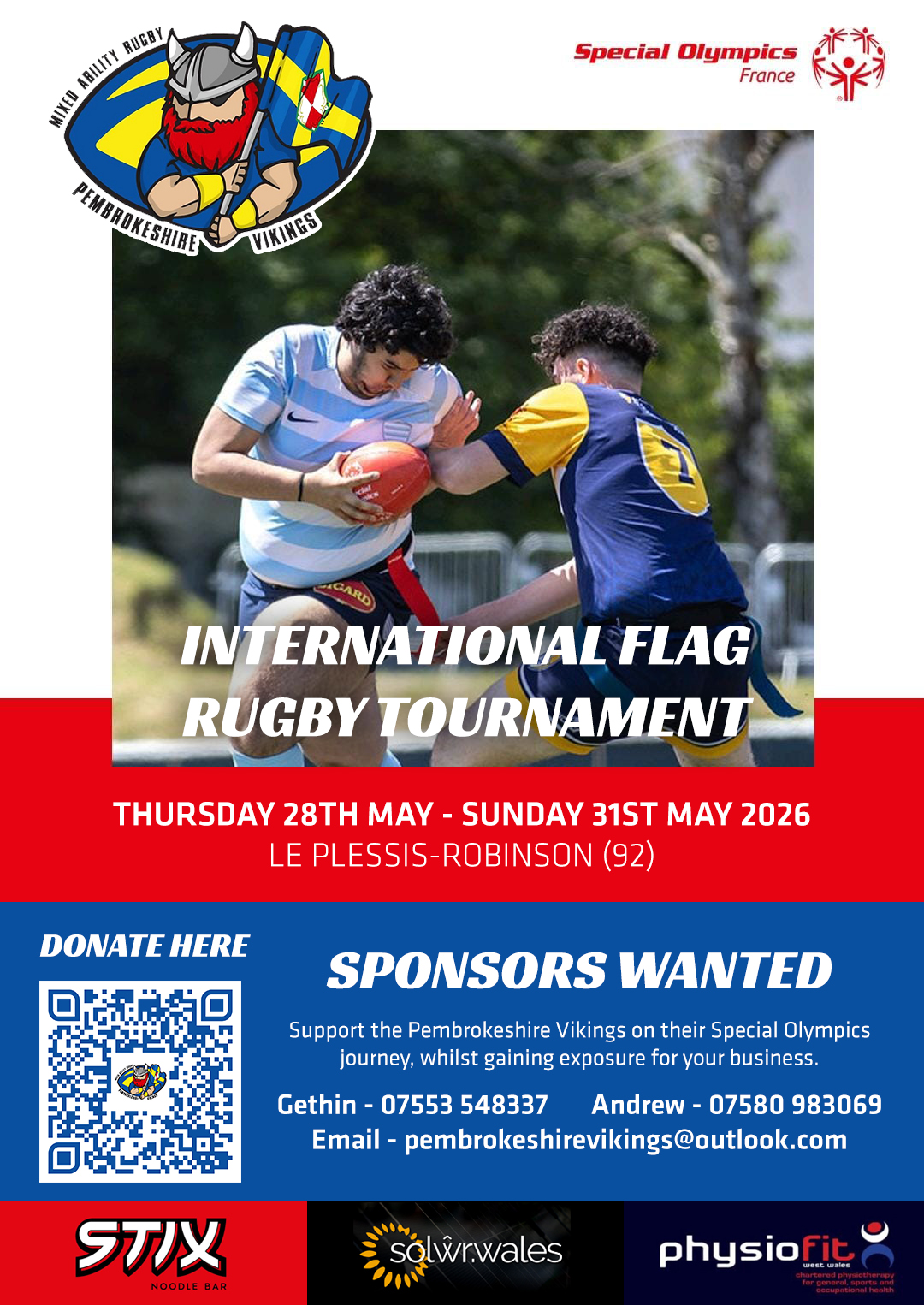 Pembrokeshire's Mixed Ability rugby team, the Pembrokeshire Vikings, have been officially selected to compete at the Special Olympics International Flag Rugby Tournament in Paris this May - a remarkable achievement and a proud moment for the county.
