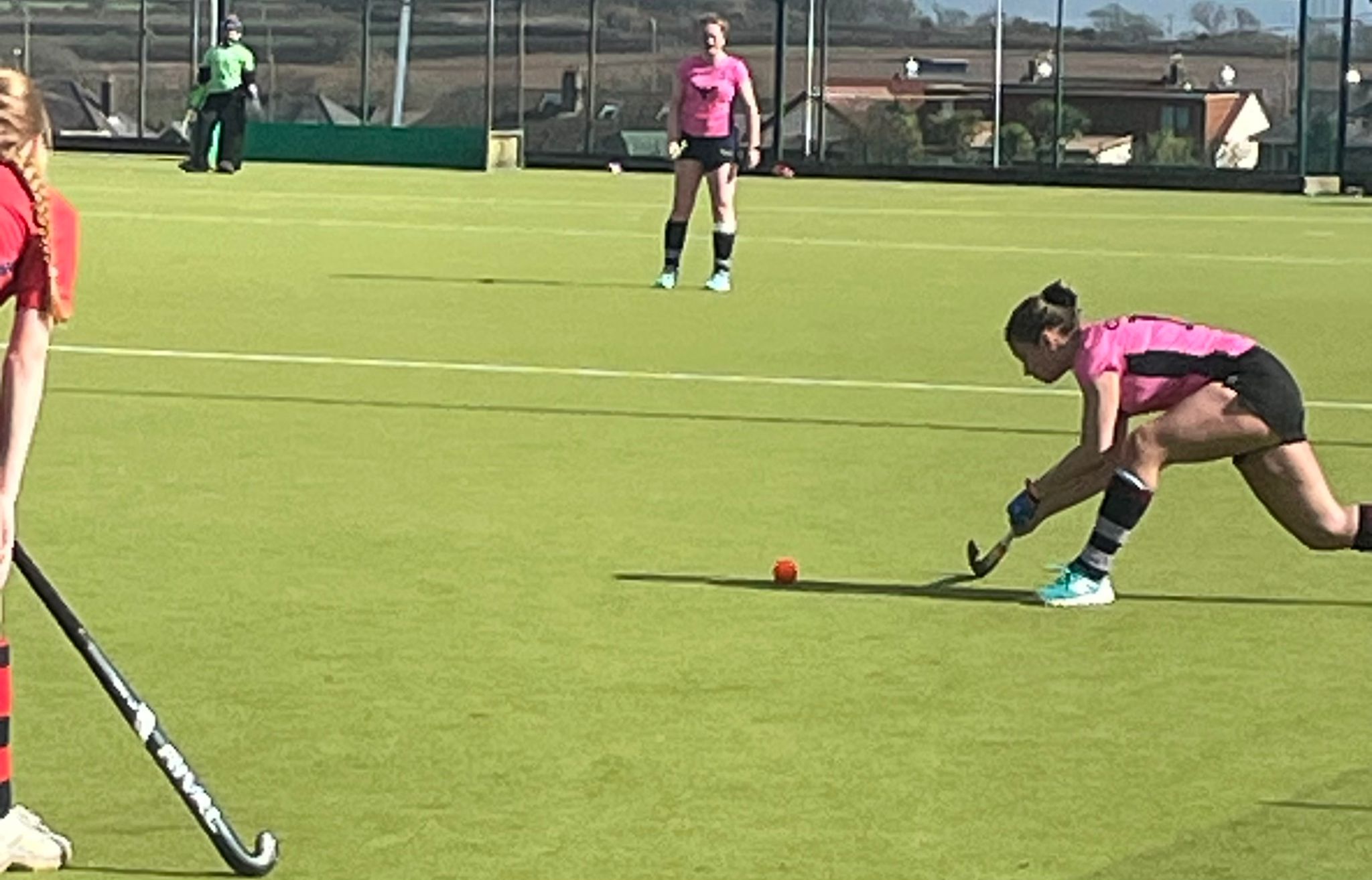 In between there were opportunities at the other end, Zoe Andrews showing good stick work in setting up Nia Rees Saunders who agonisingly fired into the side netting, teenager Lewis quick off her line to close down the space.