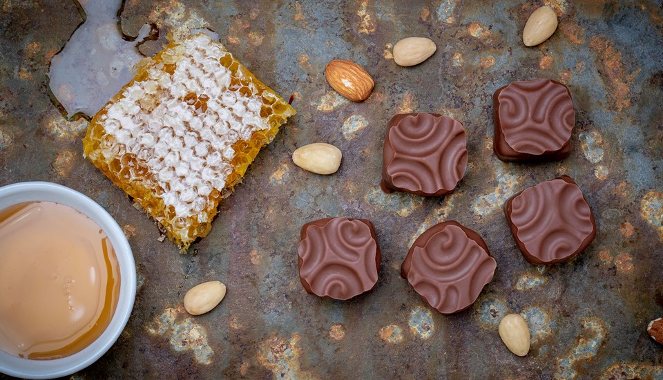 Handmade chocolate creams, beautifully decorated, flavoured with the finest essential oils and enrobed in delicious smooth chocolate.