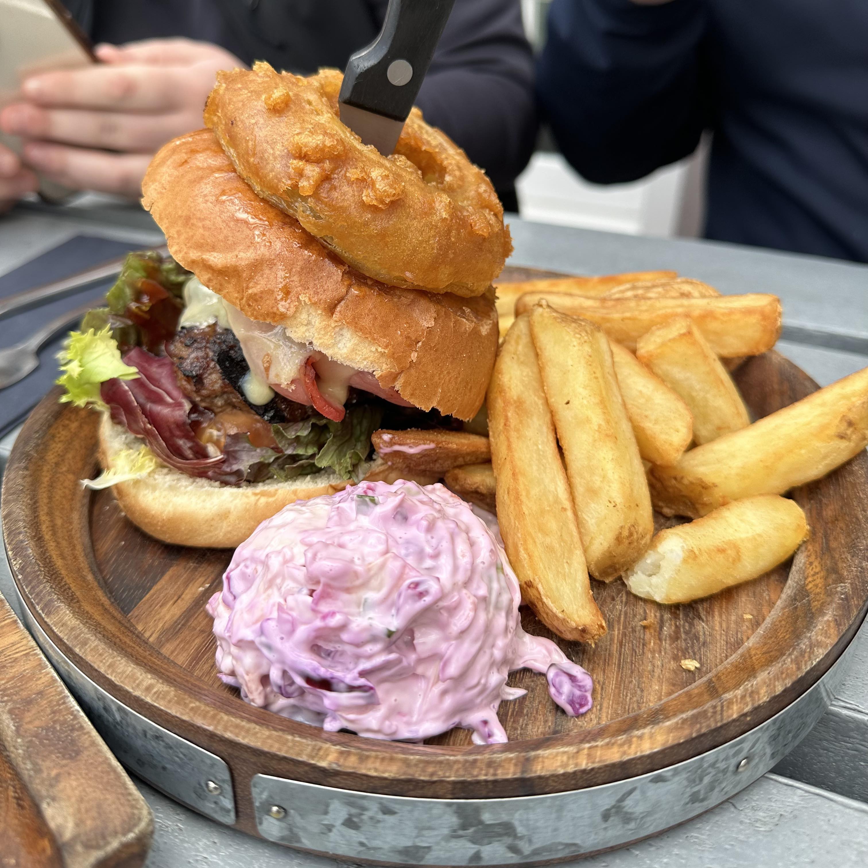 Outside seating overlooking the tranquil riverside