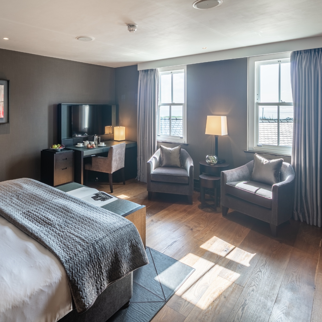 The hotel's standout feature is the three-floor suite within the original windmill tower, complete with a private observatory offering 360-degree views. From here, you can see the islands of Skomer, Grassholm, and Ramsey, as well as the scenic Preseli Hills. Each room at Twr y Felin is designed with contemporary style, luxury, and comfort in mind, making it the perfect retreat for visitors seeking relaxation and inspiration.