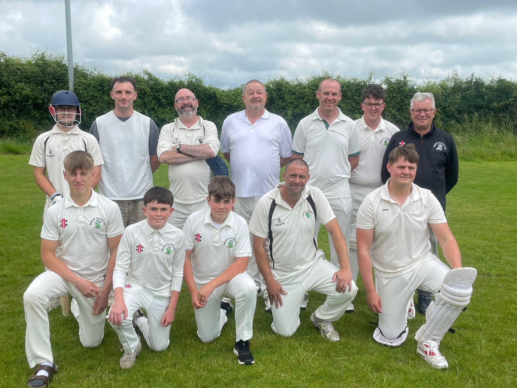 Phil Keen elected to bat on winning the toss, in a game sponsored by County Chairman Martin Jones and his wife Yvonne, opening pair Mason Kerrison (18) added 22 before Korey Arran was bowled by veteran opening bowler Gareth Fair (1-31), Lewis Hallet (11;1x4) helping take the scoreboard to 47 before he was bowled by veteran Richard Davies (2-12), Kerrison superbly run out from backward point by a direct hit from Paul Jenkins to peg back his stumps when he was short of his ground. Jenkins then caught Steve Roberts (6) to give Davies his second wicket on 57-4, Keen (19;1x4) steading the ship alongside teenager Josh James (19;3x4) before he was caught and bowled by Twigg having added 26 for the fifth wicket.