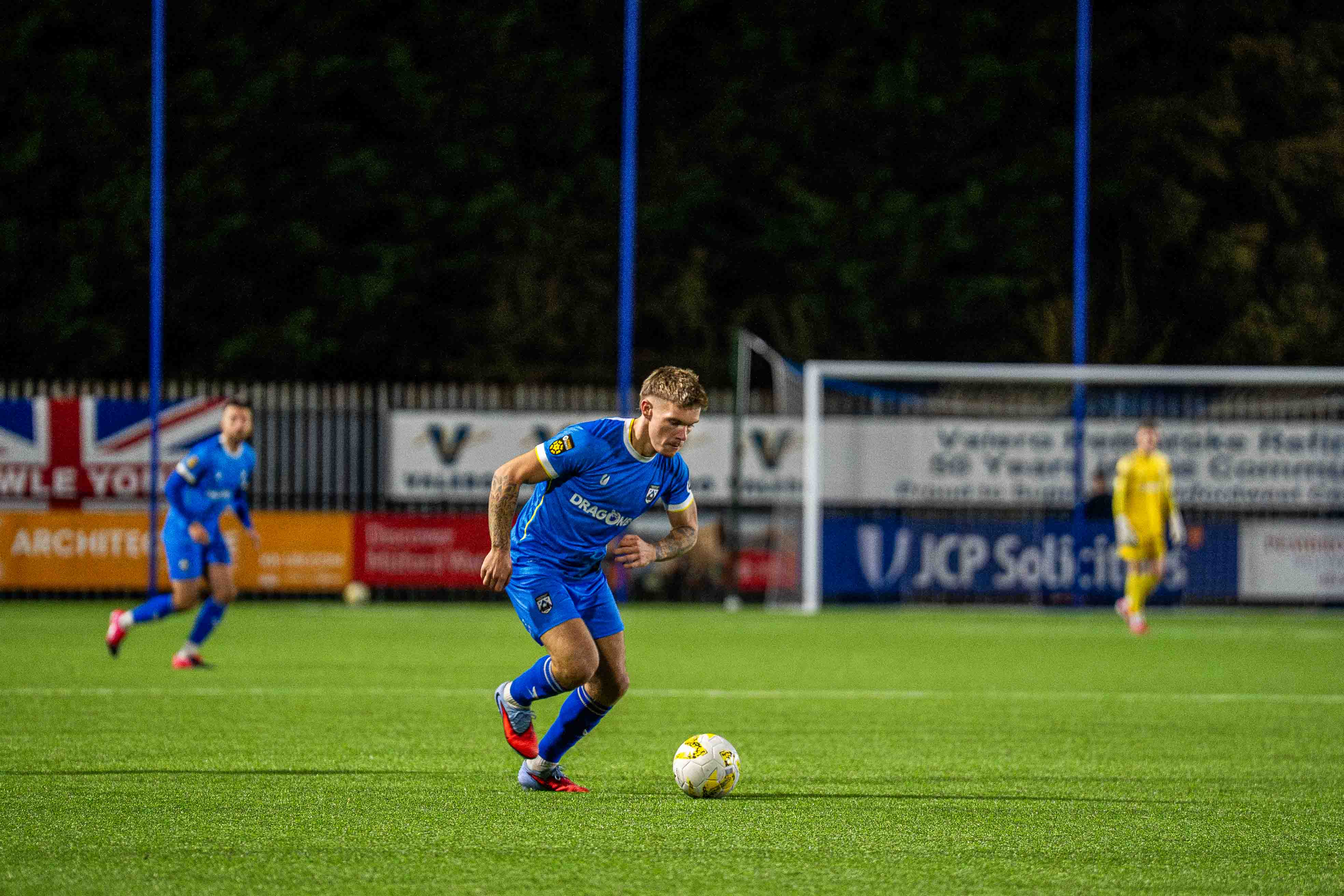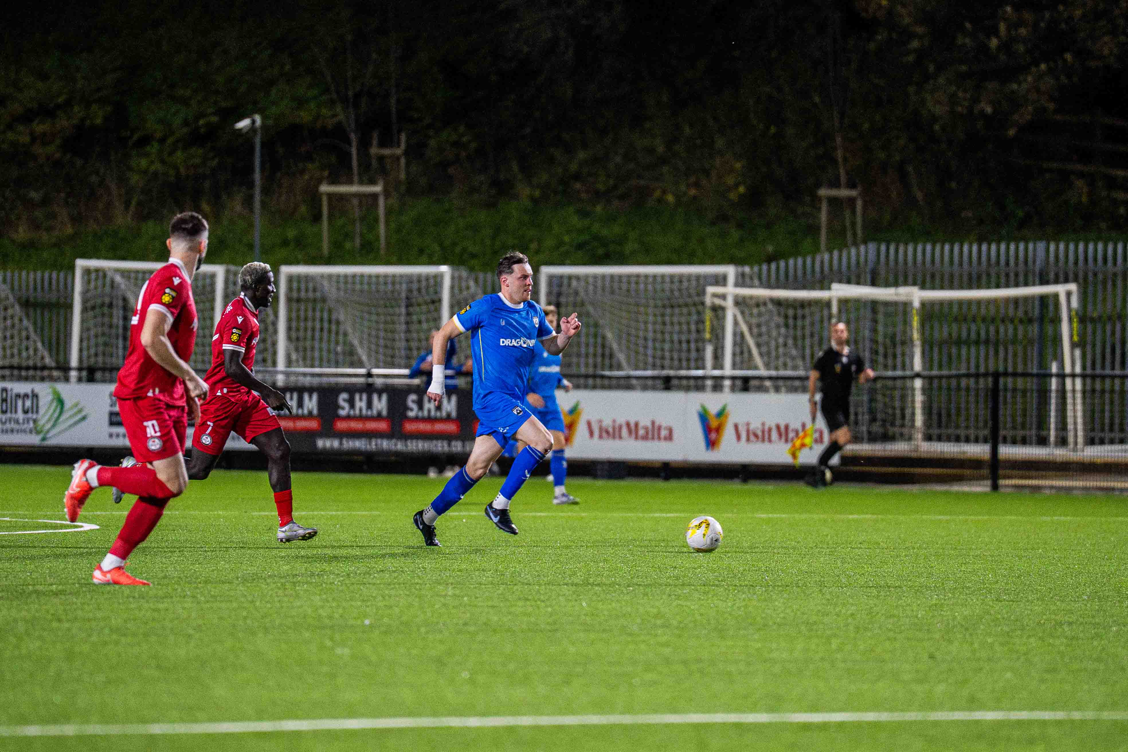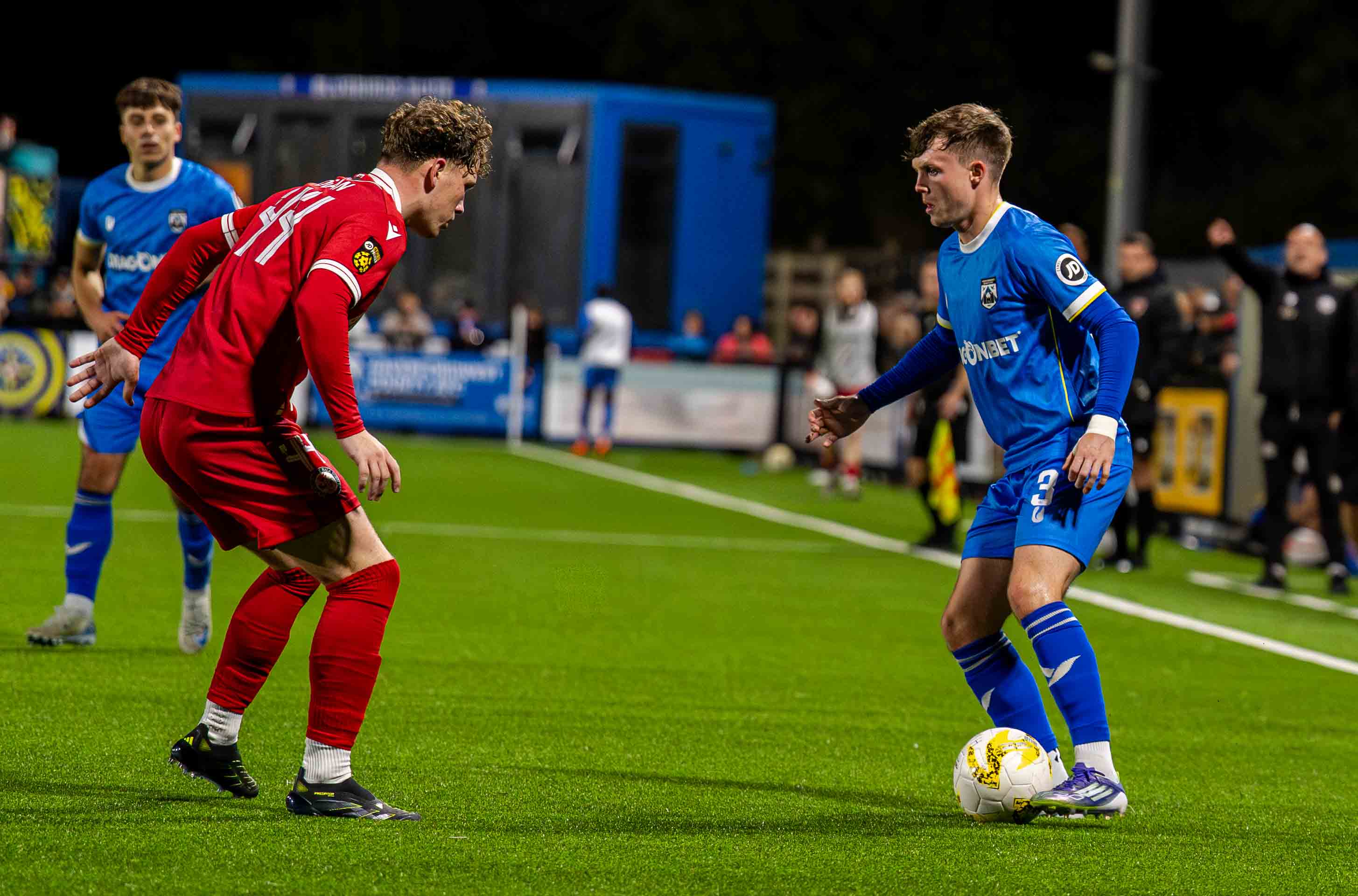 The Lakesiders, formed in 1880 showed promise in their attack, Louis Hall showing a clear pair of heels down the left flank, his sides red shirts failing to infiltrate the 18 yard box where again his delivery deserved a better result, centre half John Owen also one to show strongly as he had a battle royal with Ahumn, who chose to shoot from 18 yards on 40 minutes, with Iori Humphreys clear outside him the better option.