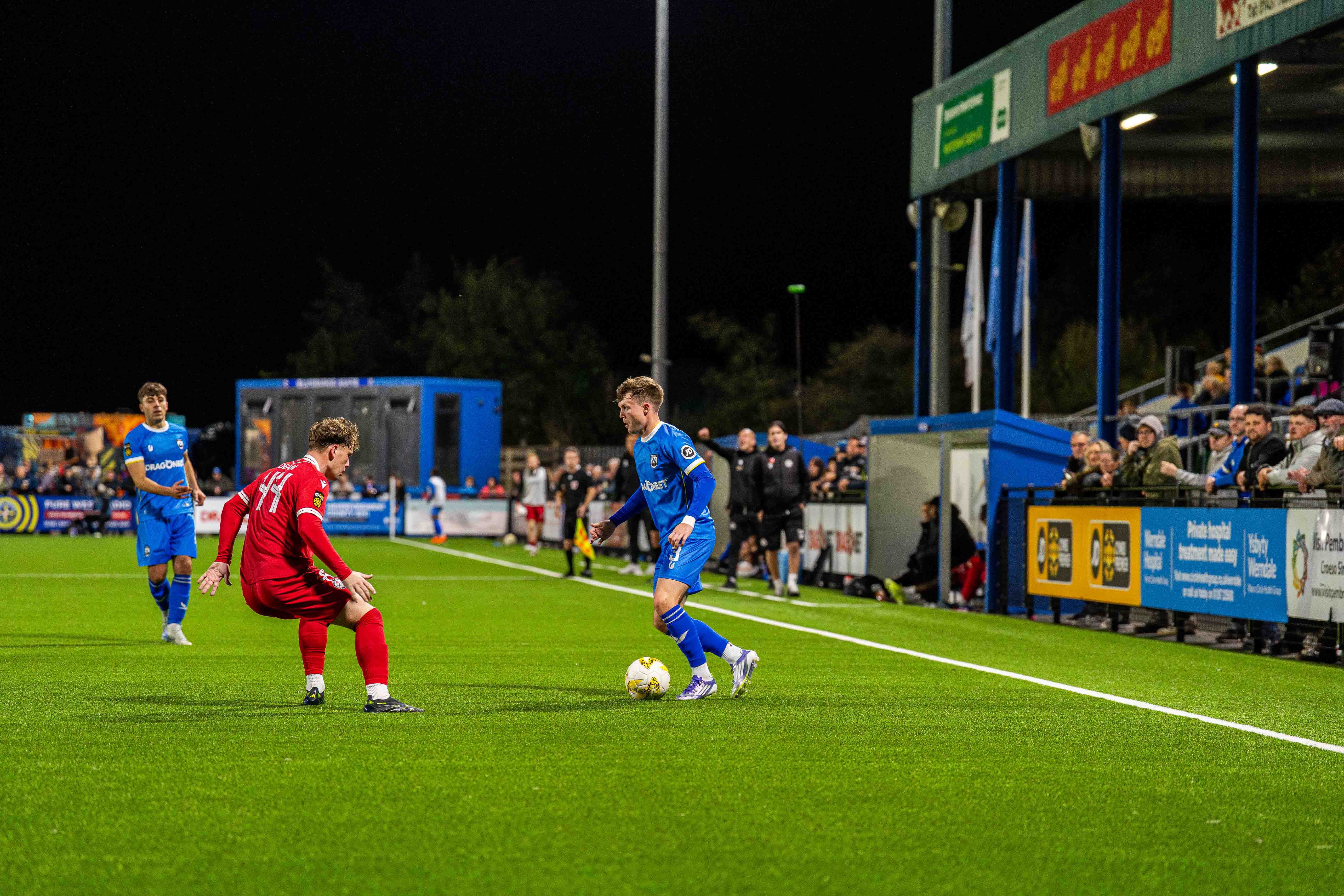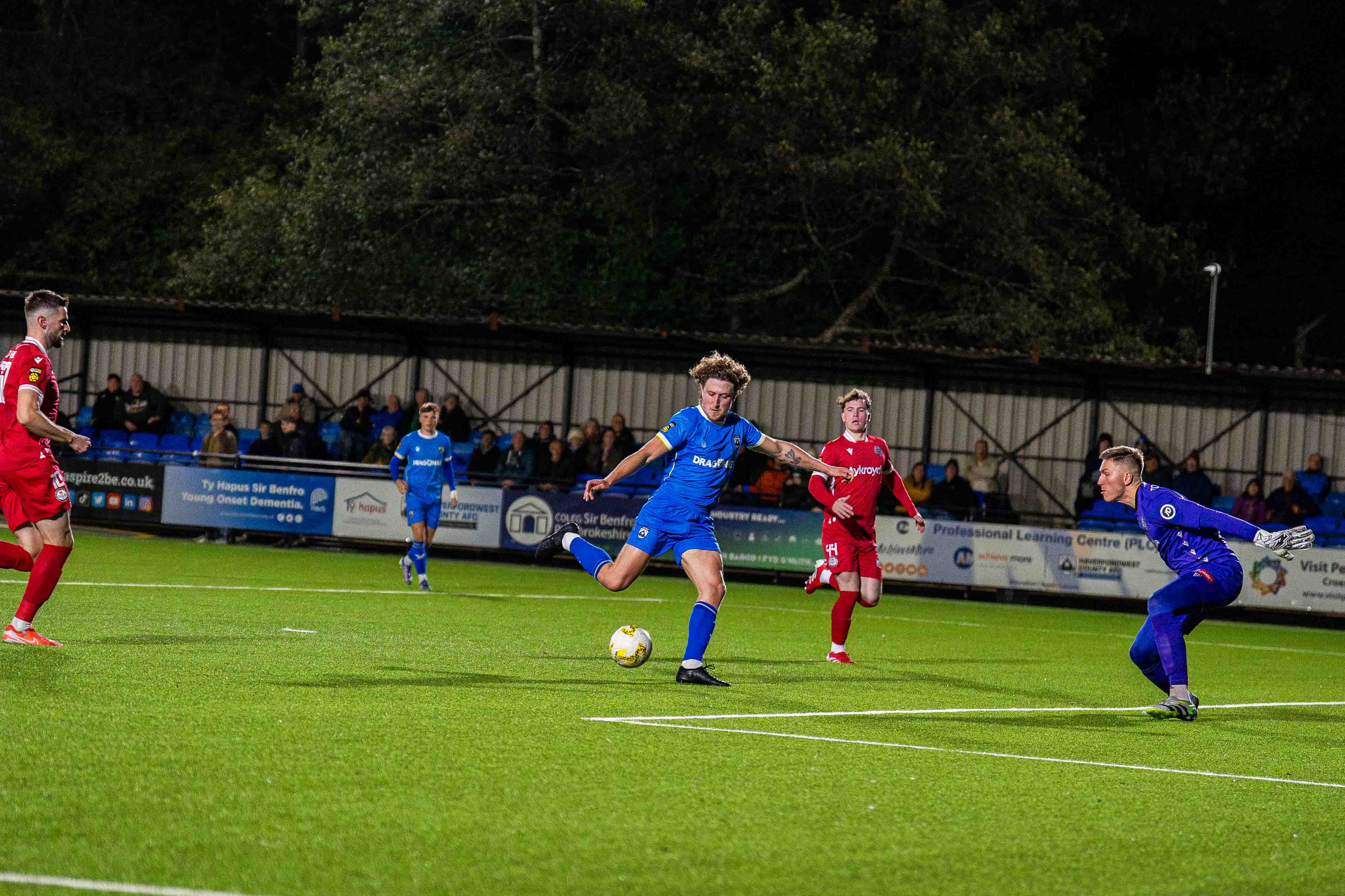 Haverfordwest County secured back to back victories at the Bridge Meadow on Friday (Oct 10) writes Jonathan Twigg, with a 2-0 success over Bala Town, having dominated the game, this despite a tame opening, Rhys Abbruzzese combining with Corey Shephard, who was far from grazing as he moved across the midfield seamlessly bringing Greg Walters into play, his cultured left boot one to admire on a calm and still Haverfordwest evening, the early noise coming from the mascots of Fishguard Sports U7 team.