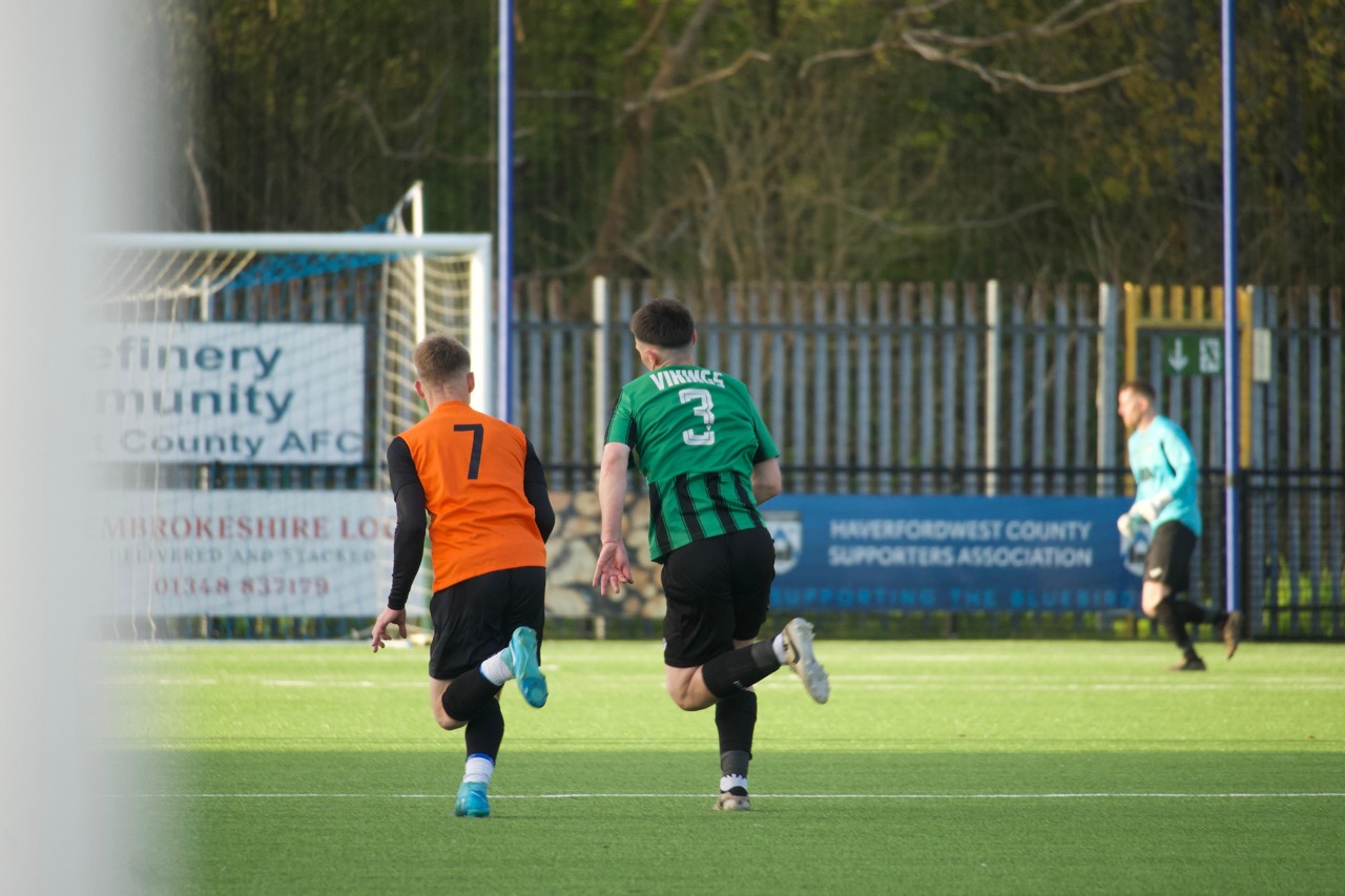 The warning signs came early. In the first minute, Hayden Dimond beat the offside trap but couldn't bring the ball under control. Hakin deservedly drew first blood on 13 minutes. Dimond picking the ball up in the middle after his team comfortably defended a deep free-kick, before releasing Mason Dolling down the right, who showed excellent control to beat his man before finishing past the keeper, hot off a man of the match performance for the First Team against Goodwick United.