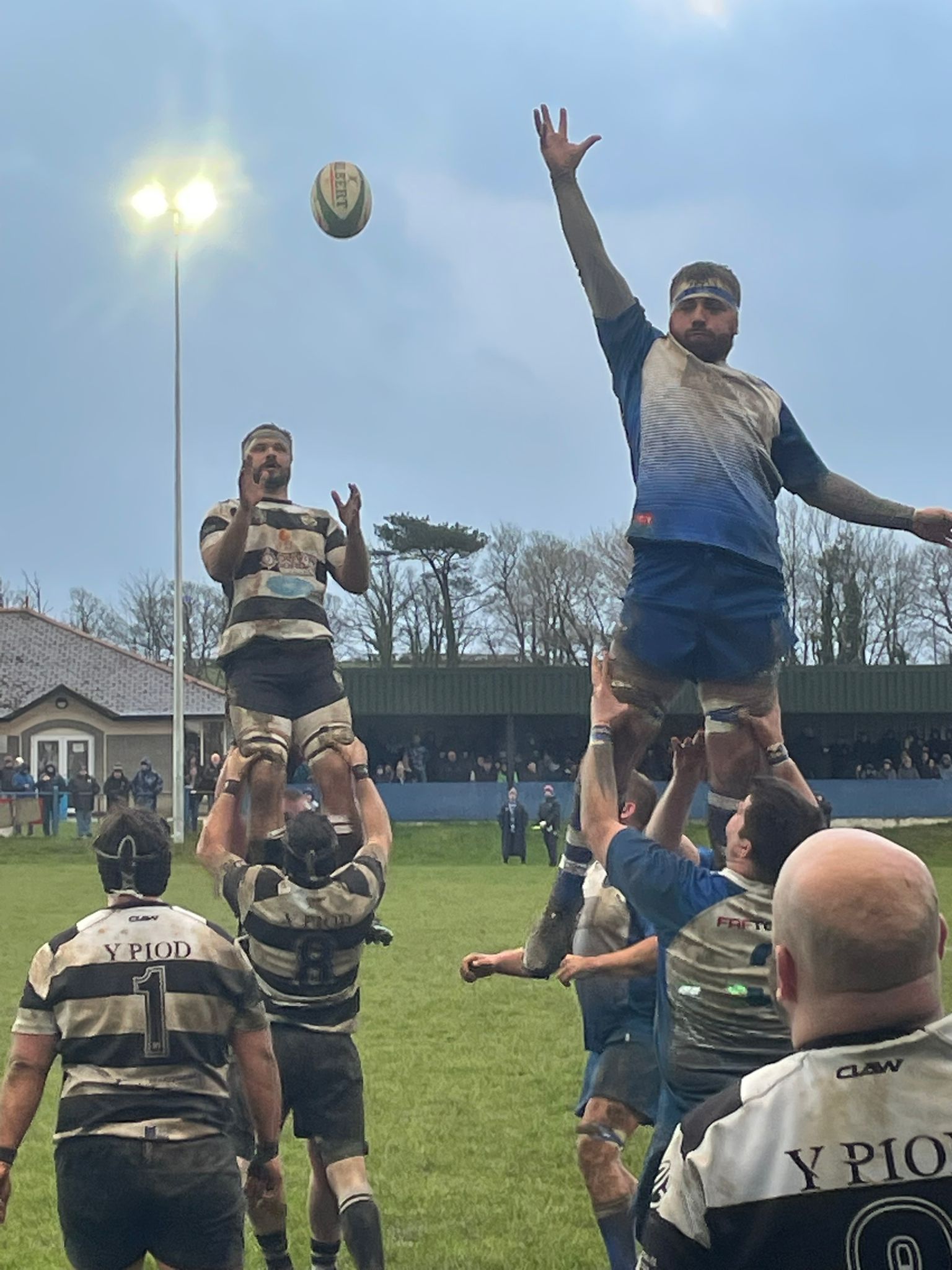 The next 15 minutes saw a down spiral for the Blues as they conceded too many penalties, veteran full back Steve Hewitt used all of his 42 years of experience to find prominent field position and it was from one such infringement on 25 minutes he reduced the arrears with a 35m penalty. The line out set piece was one in fairness where Haverfordwest jumpers Jake Evans and Jack Clancy, alongside Phillips and backrow forward Dev Willimas held parity against their opposition jumpers in Ryan Williams and Ryan Lewis, it was the ball secured from the throw which proved a problems as their route away was stifled by the tireless engagement from the Tumble backrow unit of Leonard Ellery, Daf Griffiths and number 8 Steff Owen did the hard yards.