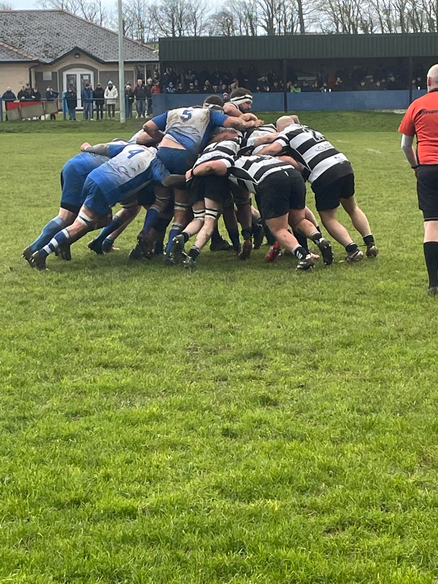 The game on a crisp winter’s afternoon settled quickly, both sets of backs trying to spearhead into opposition territory where the defensive lines held firm and the ensuing battle on the ground in lose play keenly contested and without respite. Referee Ben Clement from Ogmore Vale marshalled the offside line to allow the game to establish both a rhythm and style, youth centre Liam Hughes combing with the experienced Iestyn Arnold in midfield, scrum half Liam Eaton cajoling his peers onwards and his half back parter Adam Phillips intent to keep the ball in front of his hardworking pack, where openside flanker Ioan Hawkridge-Jones had a fiery input as he was invariably the first man to support the line breaks, where Scott Candler showed a good turn of pace in his attacking intent.