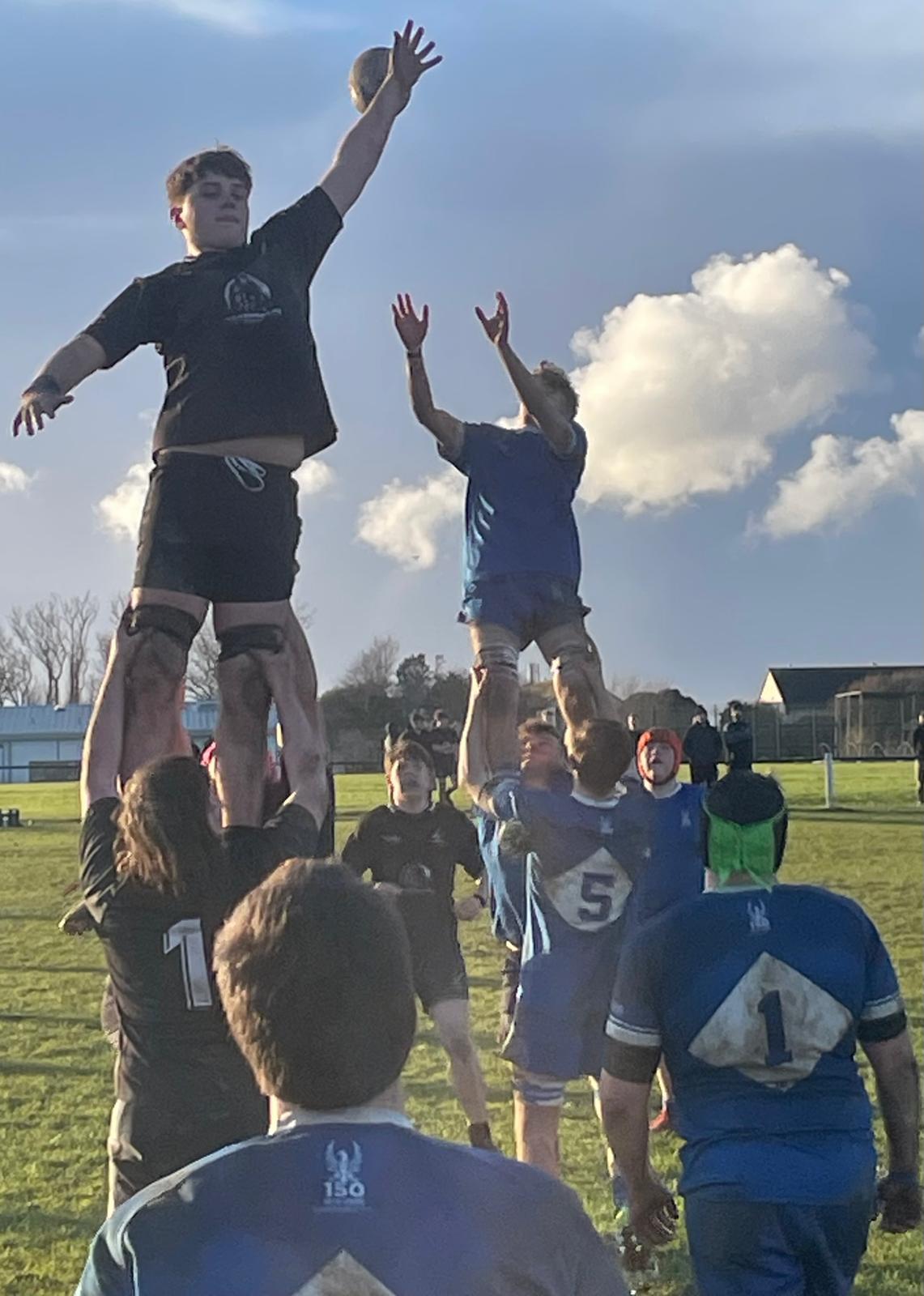 Blues captain Harri Evans had an equally measurable performance opposite Frayling at the coal face, his throws snaffled by his charges in the boiler house, Ewan Griffiths and Ollie Warlow and his front row colleagues of Josh Slater and Finn Bruins the cornerstone for the scrum dynamism alongside their trailblazer. Evans also had responsibility to control his colleagues in moments of exuberance, keeping a clear head to make key calls for his side when penalties were received, alongside being an active offensive outlet for scrum half Alfie Thomas and a solid first line of defence as the ‘All Blacks’ pressed forward.