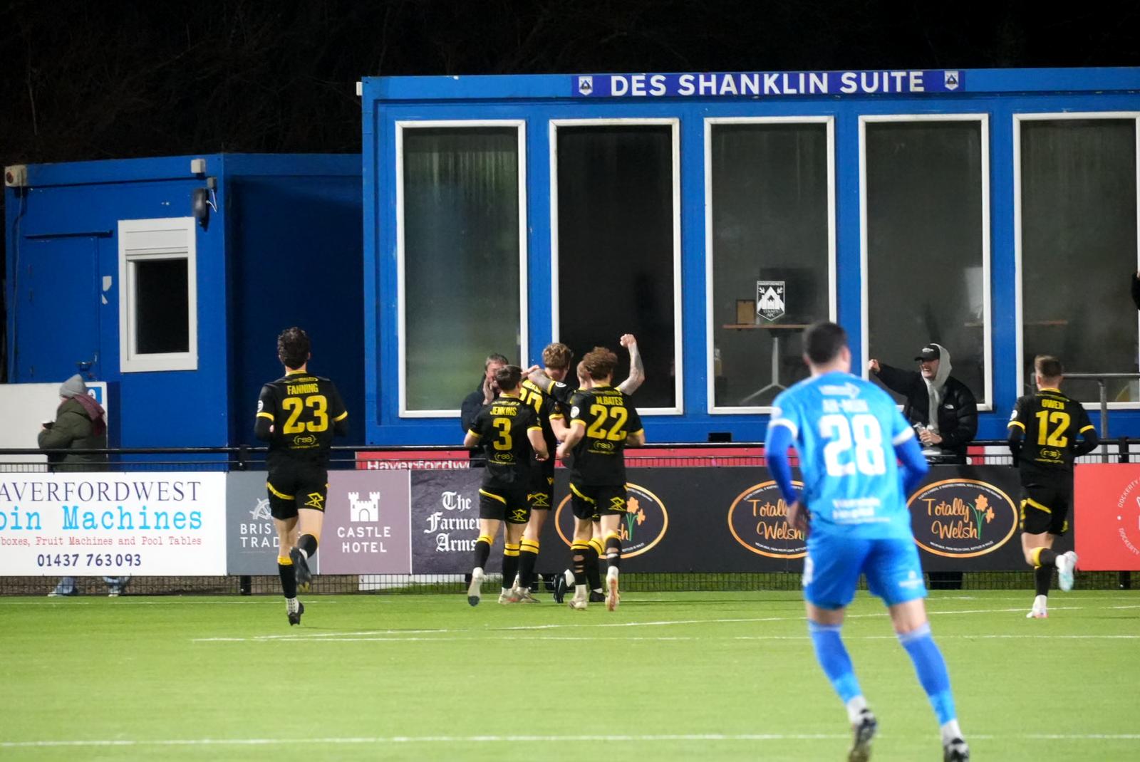 Fifteen minutes in and it was the visitors who made the breakthrough, capitalising on a poor clearance from Haverfordwest. Luis Bates won possession on the edge of the box, and Ollie Anderson finished acrobatically from the resulting cross.