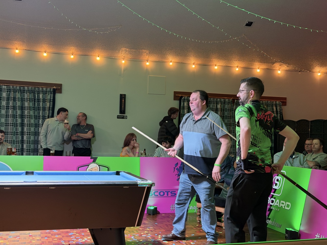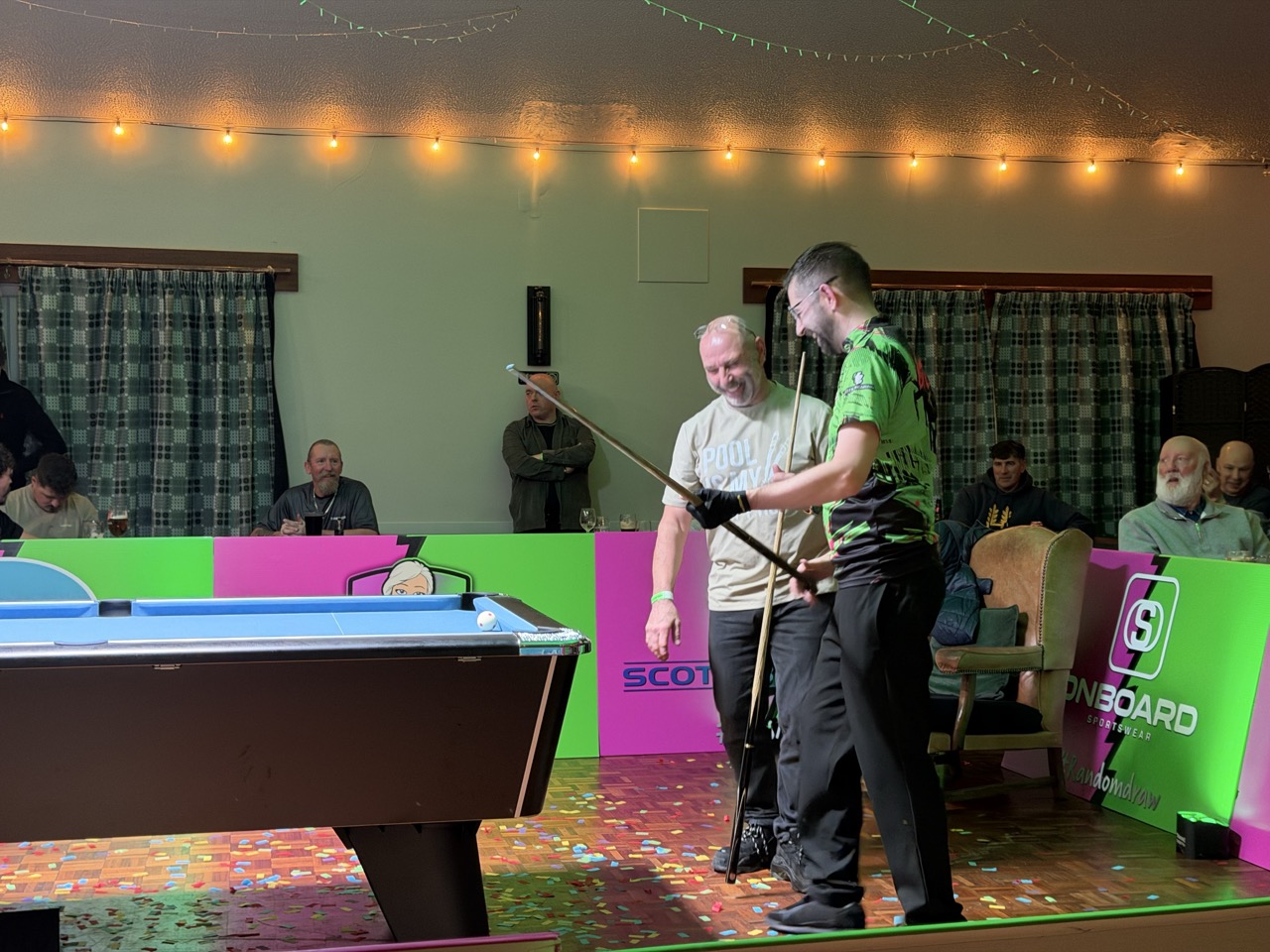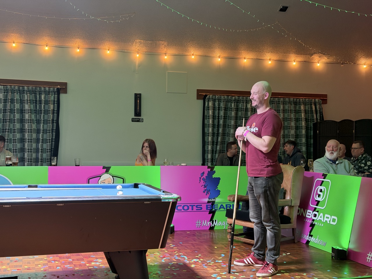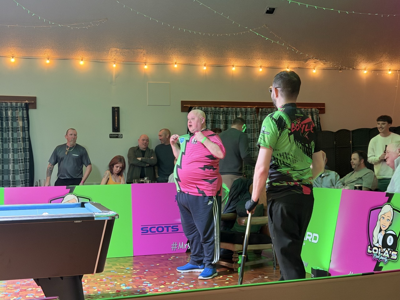 The first to get the better of Mr Magic was Scott McQuarrie, a Pembrokeshire stalwart who has represented Wales at international level – deservedly receiving a loud roar from the crowd as the confetti exploded in celebration. A handful of players would get the "bragging rights" of a victory over Boyle as the night went on, including Carl's son, Kai, in an entertaining contest.