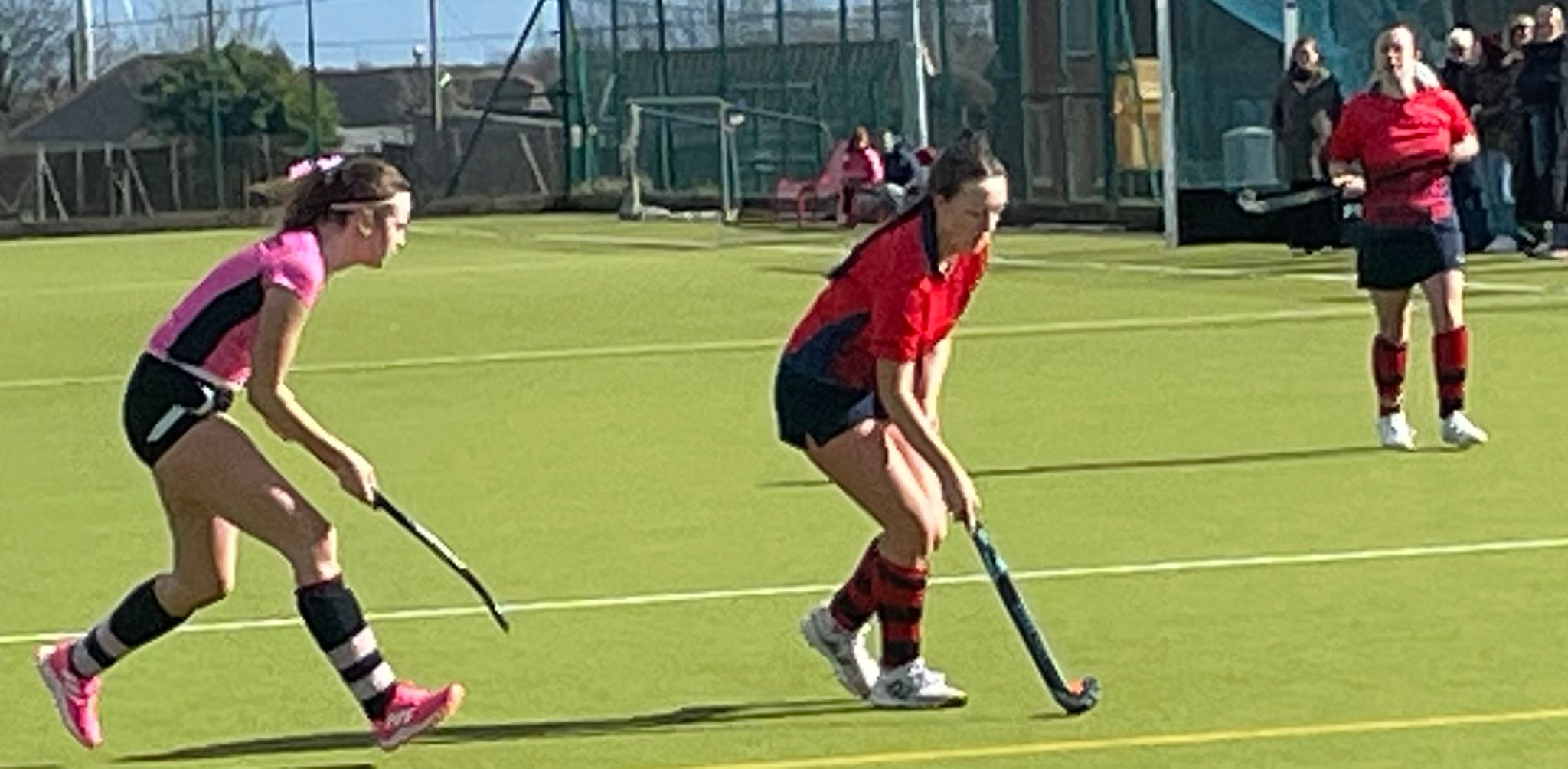 In between there were opportunities at the other end, Zoe Andrews showing good stick work in setting up Nia Rees Saunders who agonisingly fired into the side netting, teenager Lewis quick off her line to close down the space.